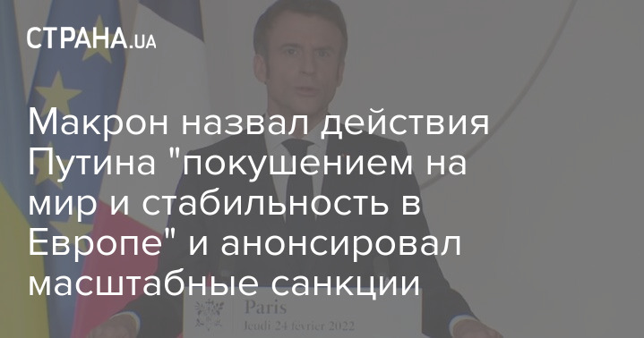 Сегодня, 24 февраля, когда президент РФ Владимир Путин объявил о "военной операции" в Украине, а Рада ввела военное положение, президент Франции Эммануэль Макрон назвал действия России покушением на мир и стабильность в Европе. Об этом он сказал в своем видеообращении в Facebook.