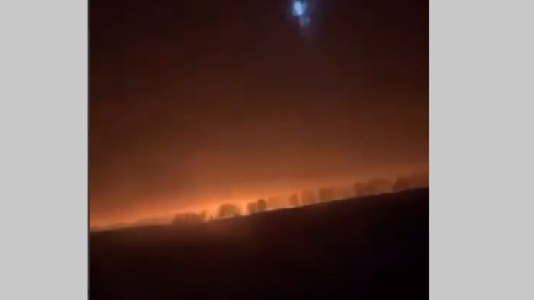 На соответствующих кадрах видеоролика видно зарево в районе миргородского аэродрома, перемежающееся вспышками.