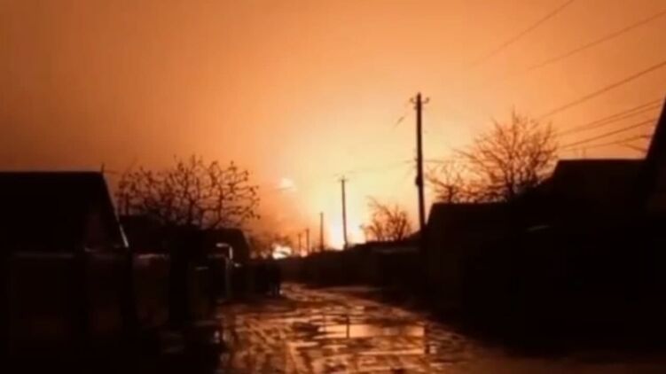 В Ровеньках на неподконтрольной территории Луганской области взорвалась нефтебаза. Говорят о возможном ракетном ударе. Сейчас на месте взрыва пылает пожар.