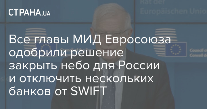 Все главы МИД Евросоюза одобрили решение закрыть небо для России и отключить нескольких банков от SWIFT