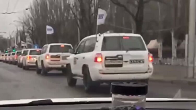 В сети появилось видео, как автомобили миссии ОБСЕ покидают Донецк (который в настоящее время находится под контролем т.н. "ДНР").