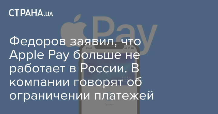 Apple Pay больше не работает в России.  Об этом со ссылкой на заявление компании Apple сообщил глава Минцифры Михаил Федоров.