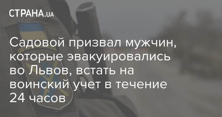 Мэр Львова Андрей Садовой объявил, что все мужчины от 18 до 60 лет, которые эвакуировались в город, должны в течение суток после прибытия встать на воинский учёт.