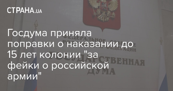 Сегодня, 4 марта, Государственная дума РФ единогласно приняла во втором и третьем чтениях поправки о наказании до 15 лет колонии "за фейки о российской армии".
