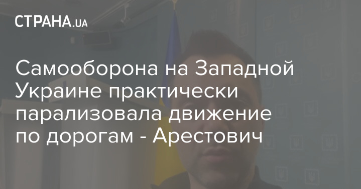 Советник главы Офиса президента Алексей Арестович заявил, что на Западной Украине отряды теробороны постоянными проверками на дорогах фактически парализовали движение.