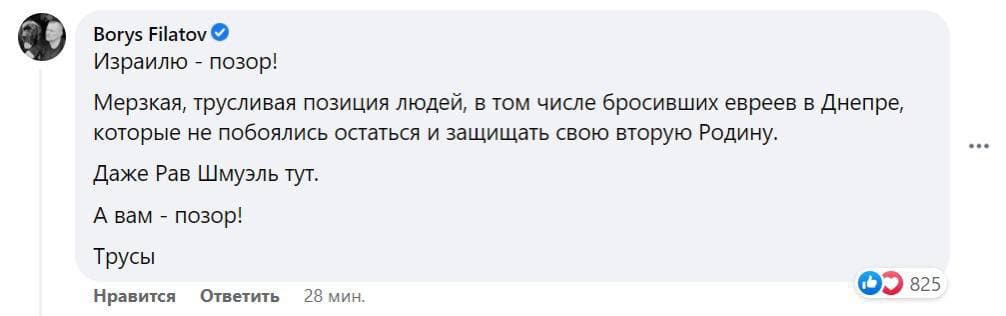 "Израилю - позор! Мерзкая, трусливая позиция", - написал в соцсети городской голова.