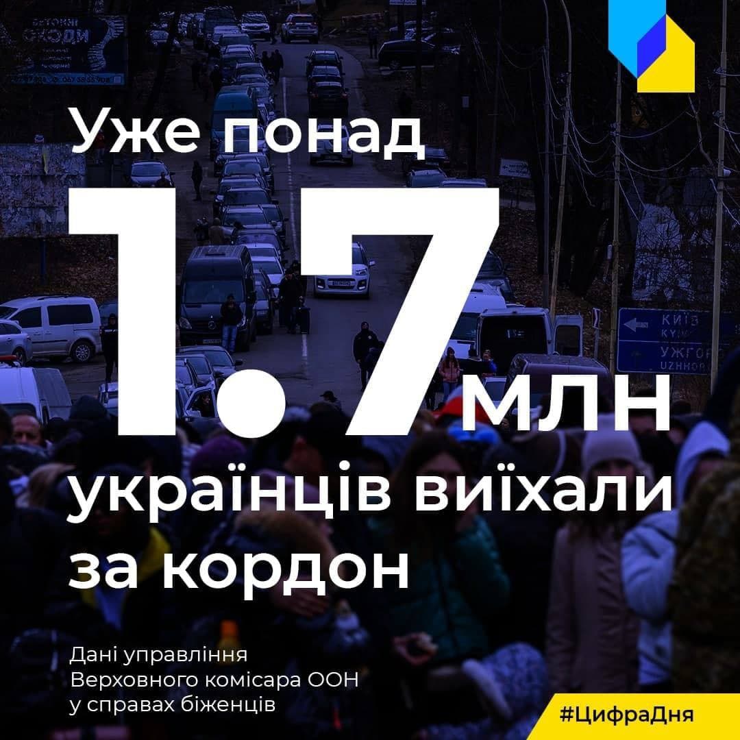 Согласно данным Верховного комиссара ООН по делам беженцев, территорию Украины с начала войны уже покинуло свыше 1,7 млн человек.