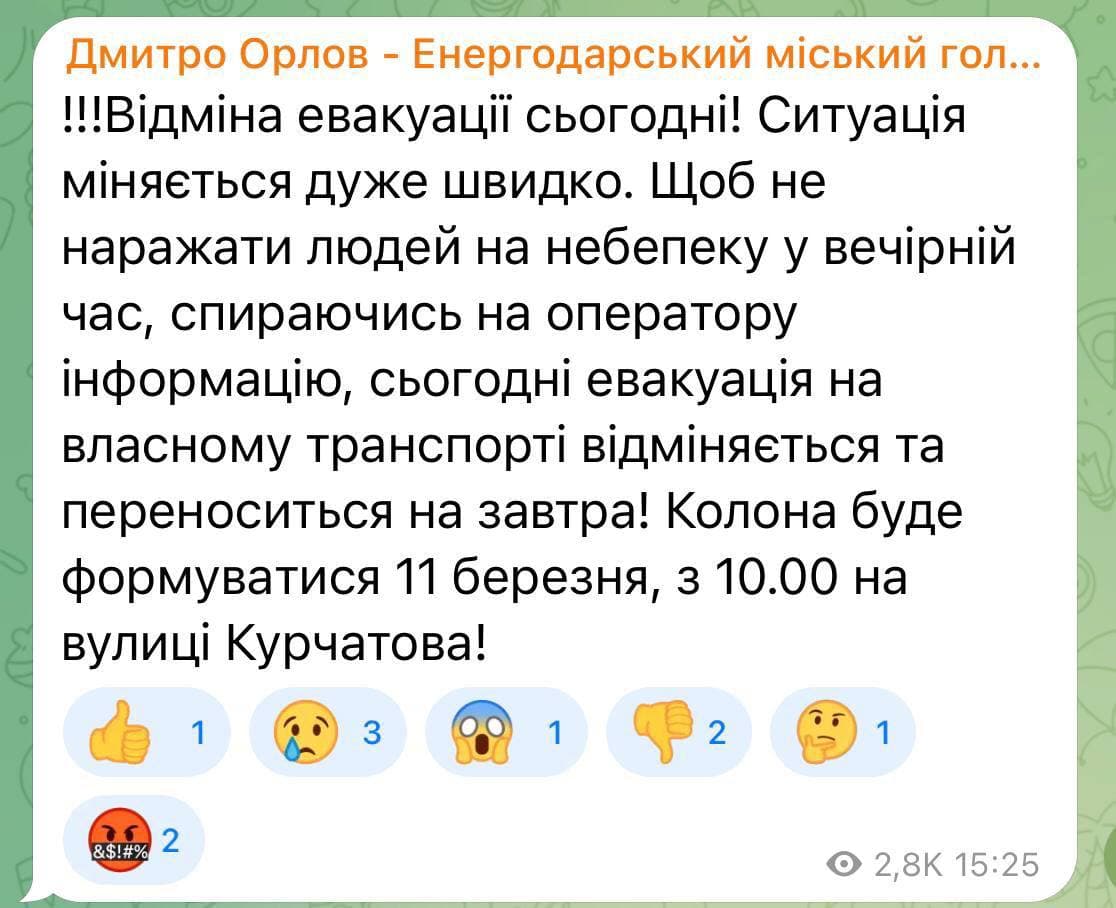 08:00 На сегодня запланировано три гуманитарных коридора для эвакуации мирных жителей из Сумской области: Сумы - Полтава, Тростянец - Полтава и Краснополье - Полтава. Начало режима тишины и движение колонн предварительно запланировано на 09:00.