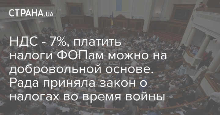 НДС - 7%, платить налоги ФОПам можно на добровольной основе. Рада приняла закон о налогах во время войны