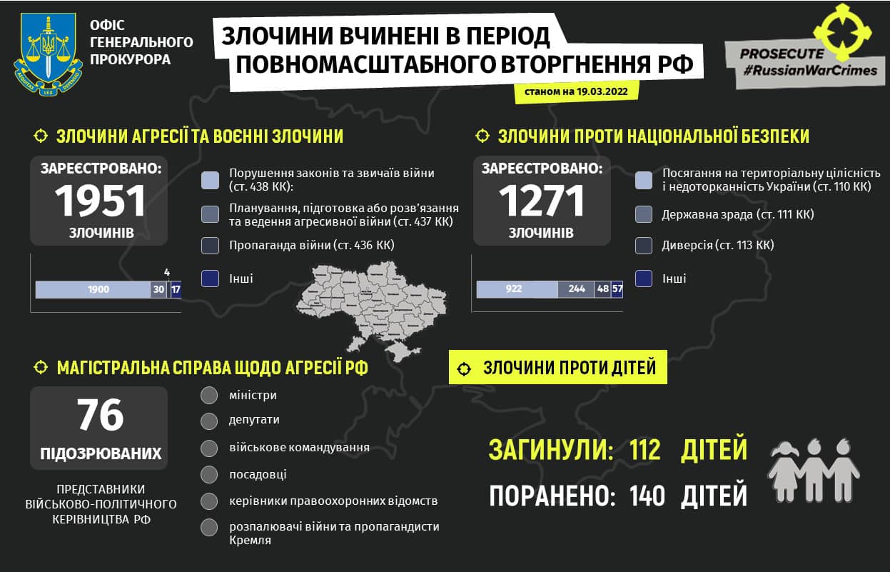 Также сообщается, что на данный момент предъявлено 76 подозрений, связанных с вооруженной агрессией России.