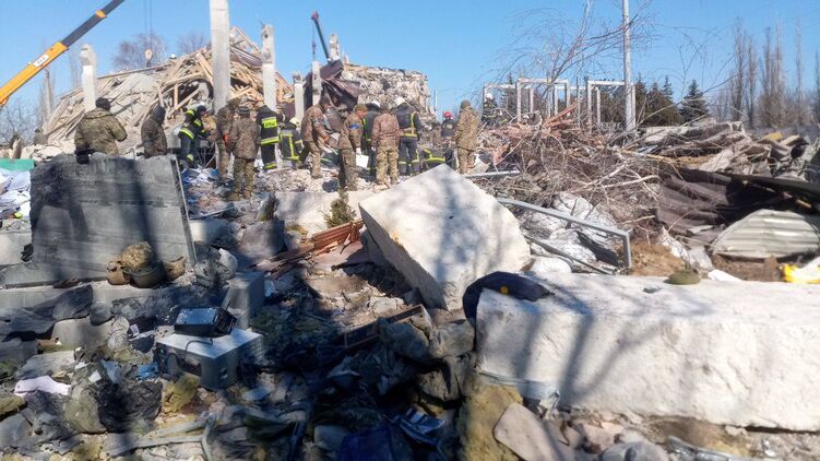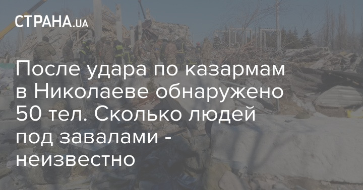 После ракетных обстрелов войсками РФ казарм 79 бригады в Николаеве из-под завалов достали не менее 50 тел украинских военных.