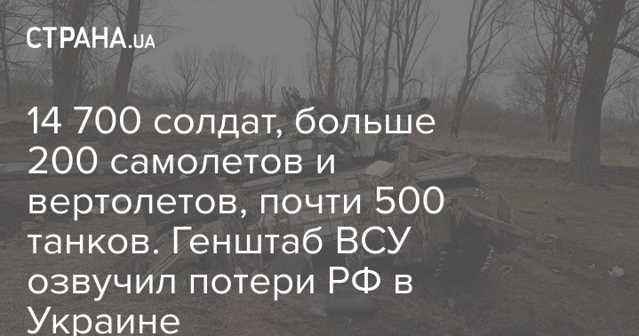 14 700 солдат, больше 200 самолетов и вертолетов, почти 500 танков. Генштаб ВСУ озвучил потери РФ в Украине