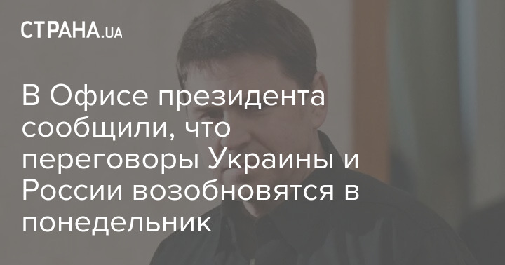 В Офисе президента сообщили, что переговоры Украины и России возобновятся в понедельник