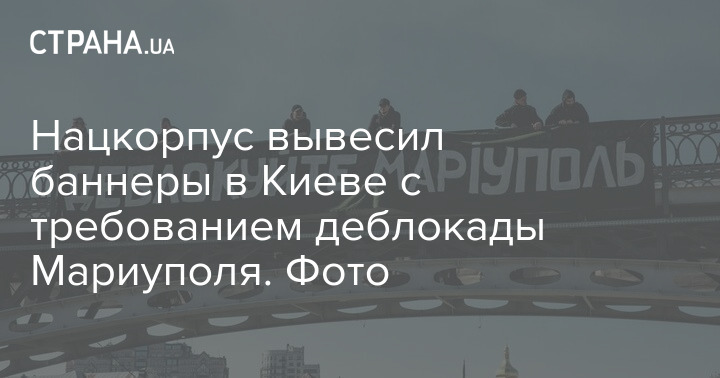 А 19 марта Киеве вывесили баннеры с требованием деблокады, о чем написал на своей странице Нацкорпус.