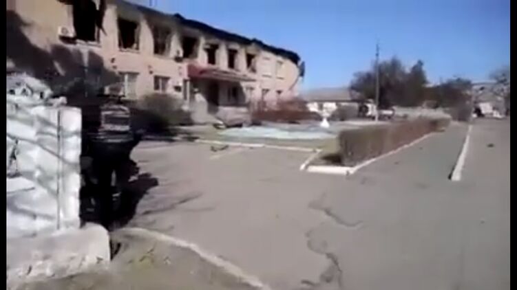 На видео попало местное отделение полиции, в крышу которого попал снаряд. Небитов сообщил, что оно фактически разрушено. Также снаряды попали в жилую пятиэтажку и больницу.