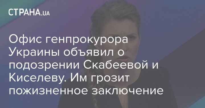 Офис генпрокурора Украины объявил о подозрении Скабеевой и Киселеву. Им грозит пожизненное заключение