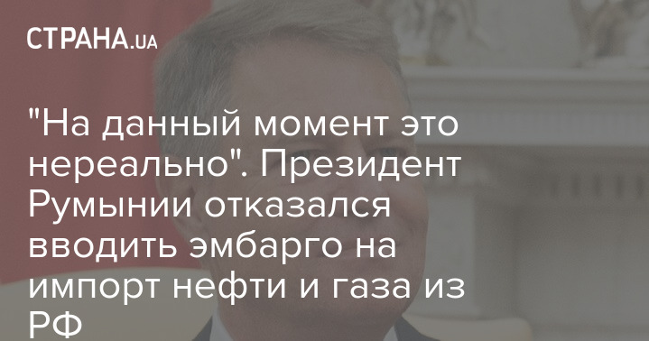 "На данный момент это нереально". Президент Румынии отказался вводить эмбарго на импорт нефти и газа из РФ