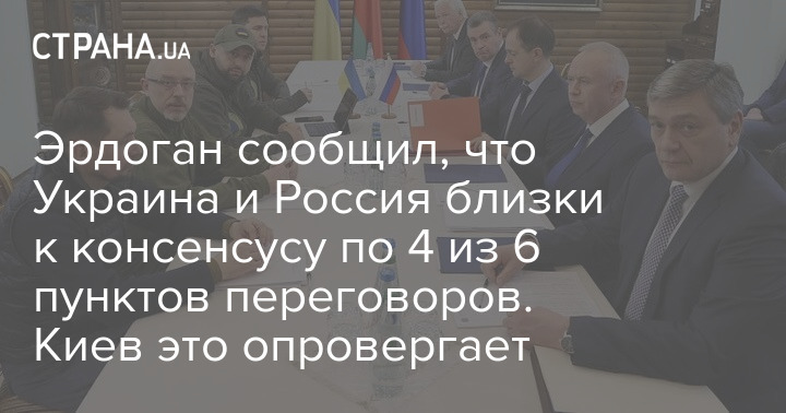 Эрдоган сообщил, что Украина и Россия близки к консенсусу по 4 из 6 пунктов переговоров. Киев это опровергает