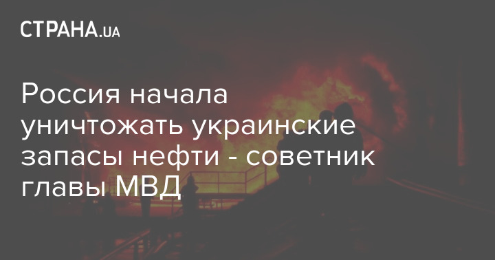 Советник главы МВД Украины Вадим Денисенко в комментарии "Стране" рассказал, что Россия начала уничтожать украинские запасы нефти.