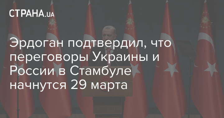 Президент Турции Реджеп Тайип Эрдоган подтвердил в понедельник, 28 марта, что встреча делегаций Украины и России в Стамбуле начнется 29 марта.