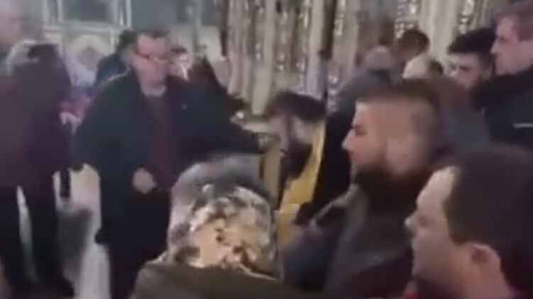 Василия Мирошниченко вытолкали из церкви. Скриншот из видео