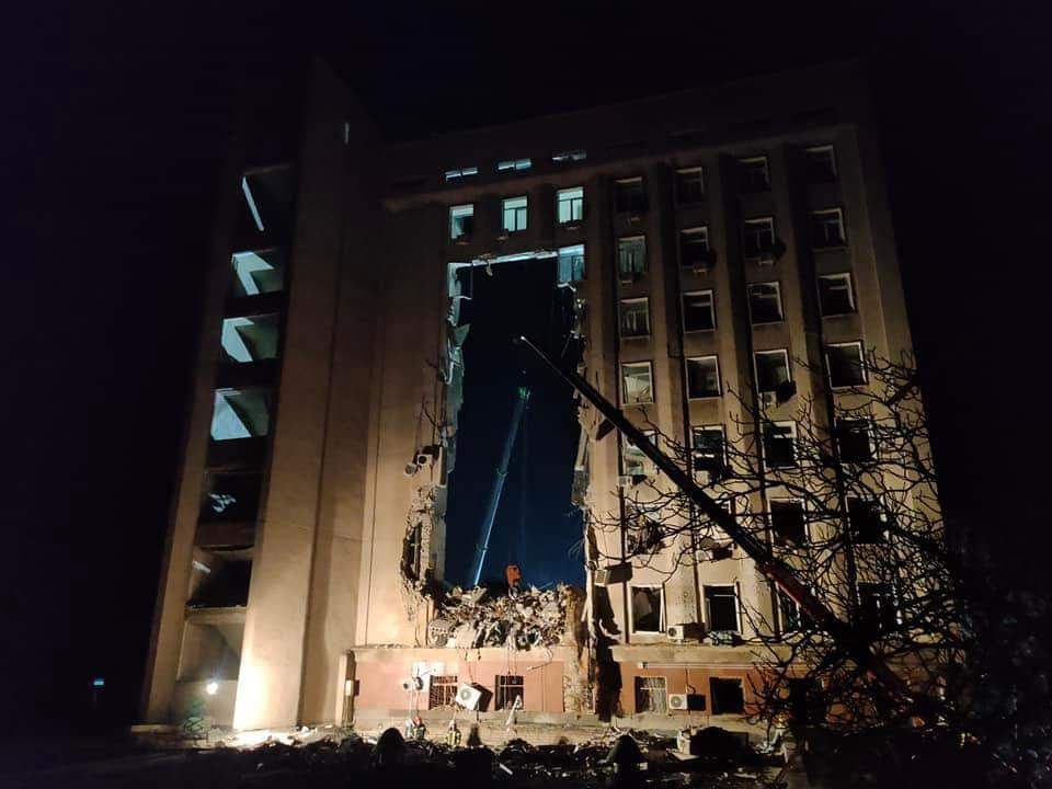 08.24 Спасатели всю ночь разбирали завалы Николаевской областной администрации, куда позавчера попала российская ракета.