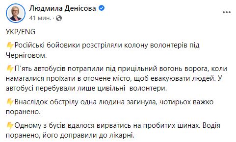 12 автобусов с гуманитарным грузом доехали до Мелитополя, но груз забрали оккупанты. Это 14 тонн продовольствия и медикаментов. Ведутся переговоры, чтобы автобусы вернули и завтра на них жители Мелитополя смогли выехать в Запорожье.