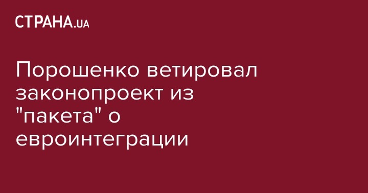 Сегодня, 31 октября, президент Украины Петр Порошенко наложил вето на законопроект "Об оценке воздействия на окружающую среду", который входит в пакет законов о евроинтеграции. Об этом говорится на сайте украинского парламента.