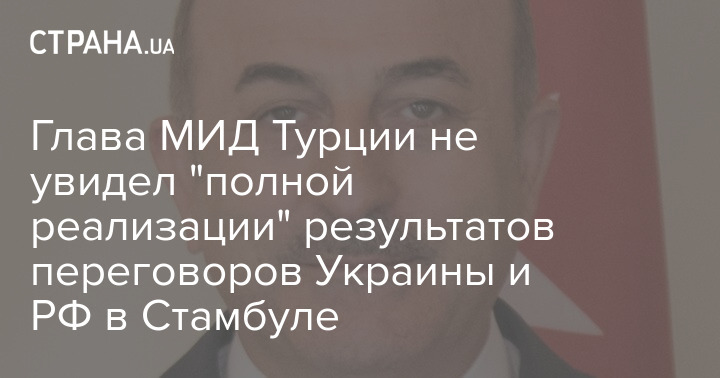 Глава МИД Турции Мевлют Чавушоглу заявил, что не видит "полной реализации" результатов стамбульских переговоров Украины и РФ.