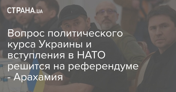 Глава украинской делегации на переговорах с РФ Давид Арахамия заявил, что решать о вступлении страны в НАТО будут граждане на референдуме. И если украинцы поддержат вступление в альянс - начнется новый раунд переговоров с Россией.