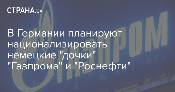 Министерство финансов ФРГ прорабатывает вопрос национализации немецких "дочек" российского публичного акционерного общества "Газпром" и нефтяной компании "Роснефть".