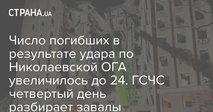 Число погибших в результате ракетного удара по зданию Николаевской облгосадминистрации увеличилось до 24 человек.