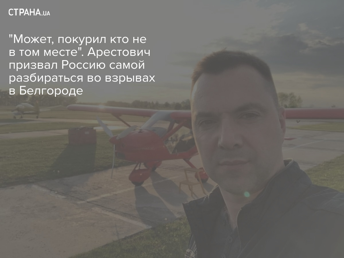 "За то, что происходит на территории РФ, несёт ответственность руководство РФ и им нужно разбираться, что же произошло в Белгороде. Может кто-то покурил не в том месте, может российские военные саботируют выполнение приказов, не хотят заходить на украинскую территорию. В любом случае, всю ответственность за происходящее на территории РФ несет руководство РФ", - заявил Арестович.