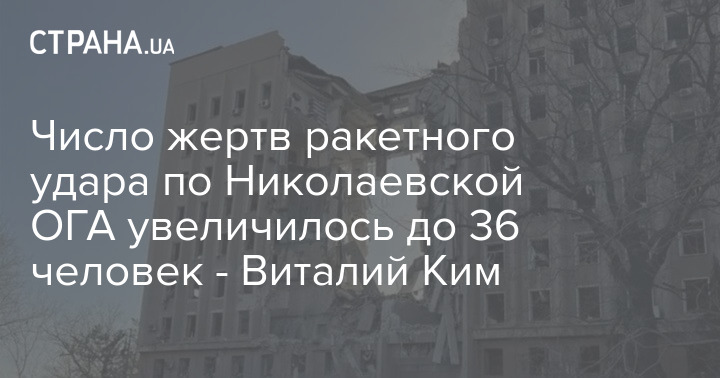 Губернатор Николаевской области Виталий Ким сообщил, что в результате российского удара по Николаевской областной государственной администрации погибли уже 36 человек. Из-за атаки скончался также его секретарь, которого искали долгое время.