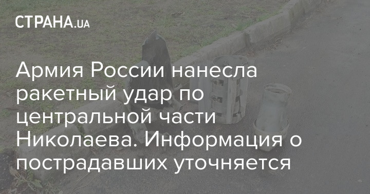 В основном ракетному удару подверглись объекты в Центральном районе города Николаева. Обломки ракеты упали прямо на дорогу и воткнулись глубоко в асфальт, согласно опубликованным в местных изданиях фото.