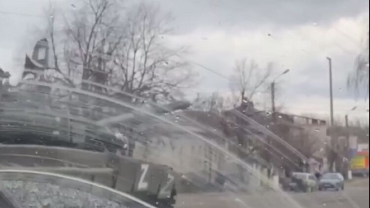 На кадрах видно передвижение техники с опознавательным знаком в виде буквы "Z".