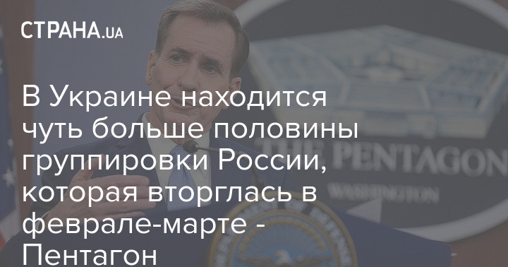 В Министерстве обороны США заявили, что сейчас на территории Украины находится 60% той российской группировки, которая вошла на нее в начале войны.