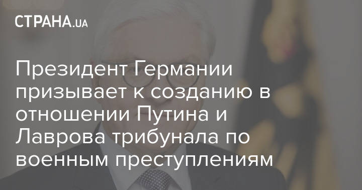 Президент Германии Франк-Вальтер Штайнмайер призывает к созданию в отношении президента России Владимира Путина и министра иностранных дел Сергея Лаврова трибунала по военным преступлениям.