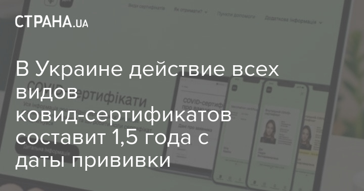 В Украине действие всех видов ковид-сертификатов составит 1,5 года с даты прививки