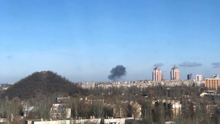 Появились фото и видео задымления в Донецке. В местной "мэрии" сообщают, что повреждены школа и газопровод, ранены две мирные жительницы.