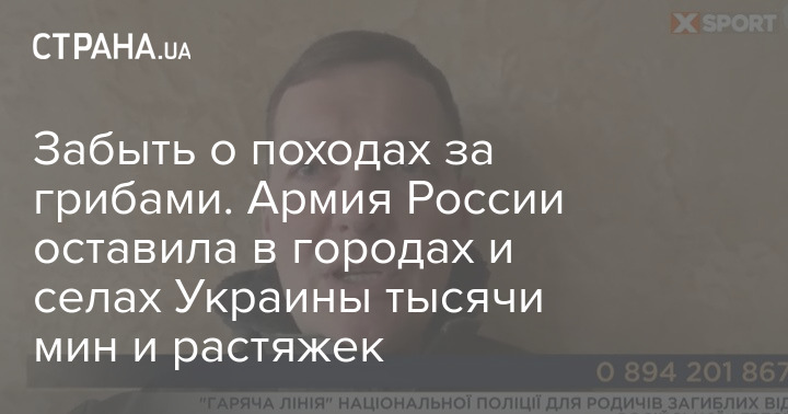 Кроме того, первый заместитель министра внутренних дел Евгений Енин в эфире национального телемарафона рассказал, что жителям территорий, с которых ушли российские войска, стоит после возвращения забыть о походах за грибами - по крайней мере, ближайшей осенью.