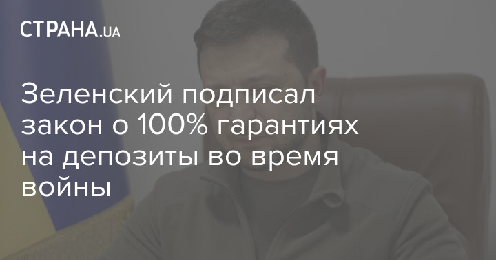 Президент Украины Владимир Зеленский подписал закон о 100% гарантиях государства на депозиты населения в банках на время действия военного положения. Затем сумма возмещения составит 600 тысяч гривен вместо нынешних 200 тысяч.