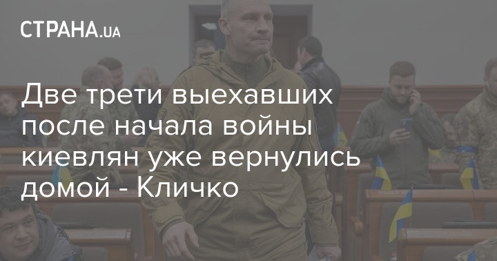 Две трети киевлян, которые в первые недели войны в Украине выехали из столицы, уже вернулись домой. Об этом в эфире телемарафона сообщил мэр Киева Виталий Кличко.