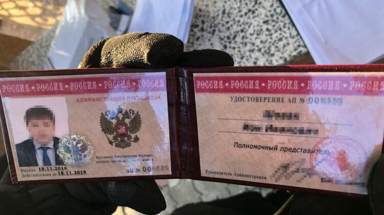 "В ходе обысков в квартире фигуранта дела правоохранители изъяли средства связи, транспорт, банковские карты, которые могли использоваться для незаконной деятельности. В доме мужчины обнаружили немало пророссийской атрибутики и просроченное удостоверение уполномоченного представителя администрации президента России. Подлинность документа будут изучать эксперты", - говорится в сообщении.
