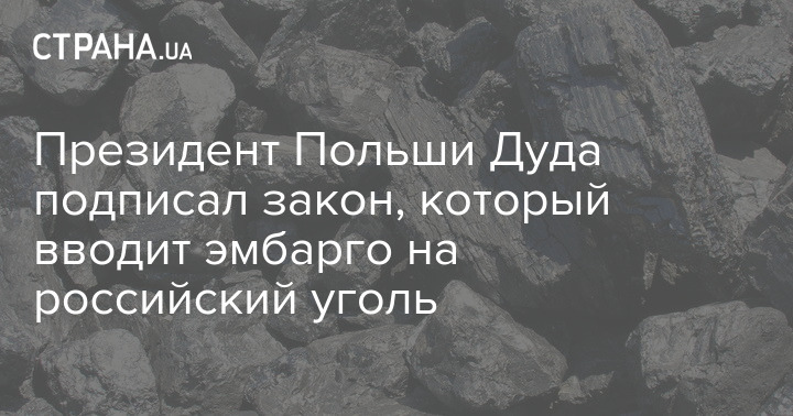 Президент Польши Анджей Дуда подписал закон, вводящий эмбарго на уголь из России. Кроме того, закон предусматривает возможность замораживать активы лиц, поддержавших вторжение России в Украину.