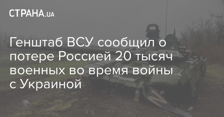 Генштаб ВСУ сообщил о потере Россией 20 тысяч военных во время войны с Украиной