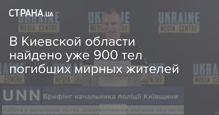 В Киевской области найдено уже 900 тел мирных жителей, погибших в результате военных действий.
