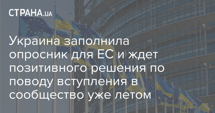 Украина уже заполнила опросник, необходимый для получения статуса кандидата в Евросоюз. Теперь страна ждет действий от Еврокомиссии.