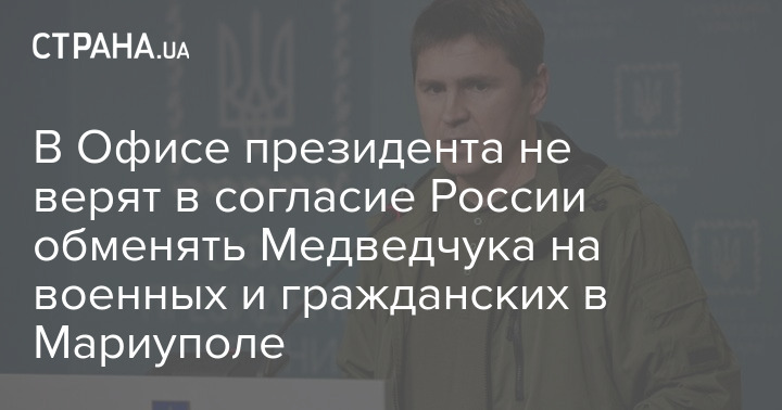 В Офисе президента не верят в согласие России обменять Медведчука на военных и гражданских в Мариуполе