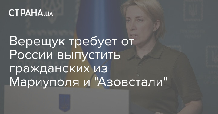 Вице-премьер Ирина Верещук требует от руководства России открыть гуманитарный коридор и позволить вывести мирных жителей из Мариуполя.